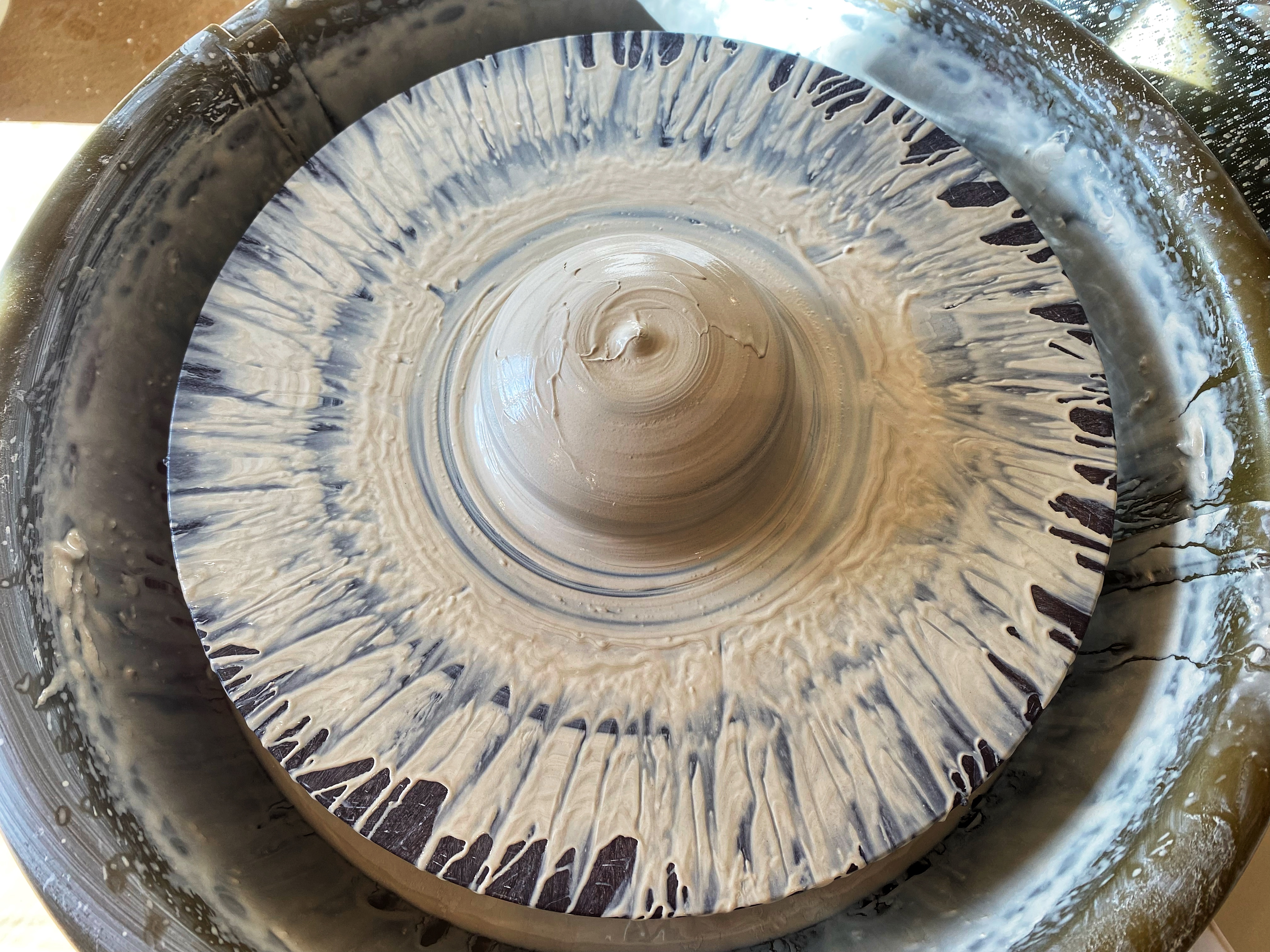 I typically throw my wares on my pottery wheel. The practice of throwing pottery leaves behind “throwing lines,” divots, and creases unique to each piece and it’s metamorphosis. I consider these markings to be a signature, as they illuminate the relationship between maker and clay – how, through attentive and delicate skill, a ball of earth was transformed into the finished piece.