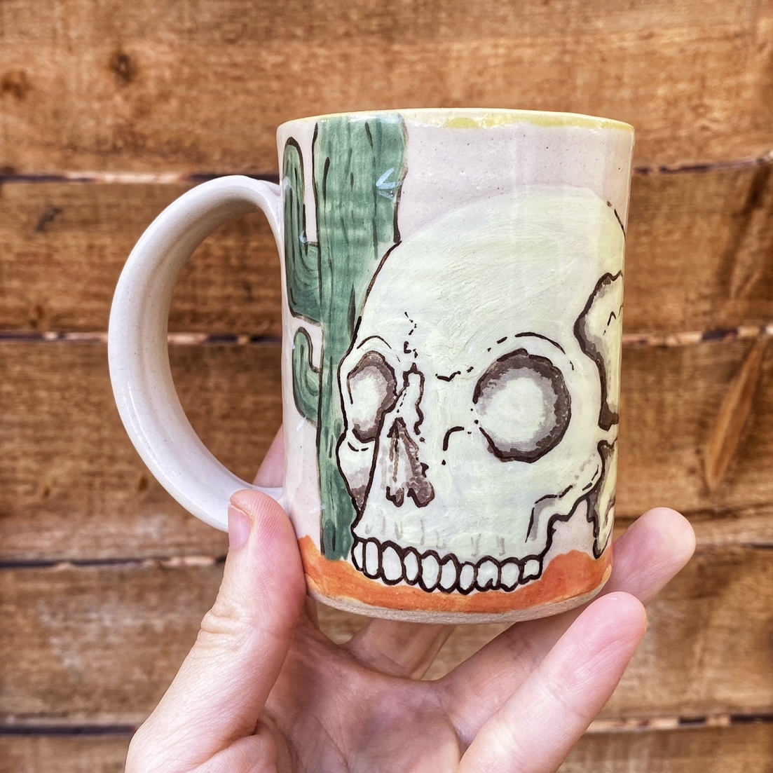 This awesome handmade mug has been hand painted with a layered desert landscape scene! It holds about 9 fluid ounces (266 mL) of hot or cold liquid – the perfect size for a tea or coffee. Feel the desert heat and live out your Wild West dreams with this Lone Star mug.